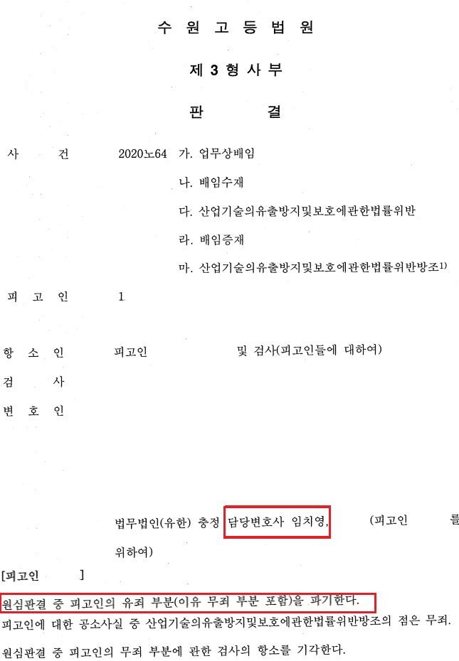 수사절차 및 재판 후 공판절차에서, 본범과의 거래상 관계, 산업기술에 대한 고의성 여부에 관하여 집중 방어함으로써, 수사절차에서 영장기각, 1심 징역형의 집행유예, 2심 벌금형, 3심 원심 유지의 결과를 도출