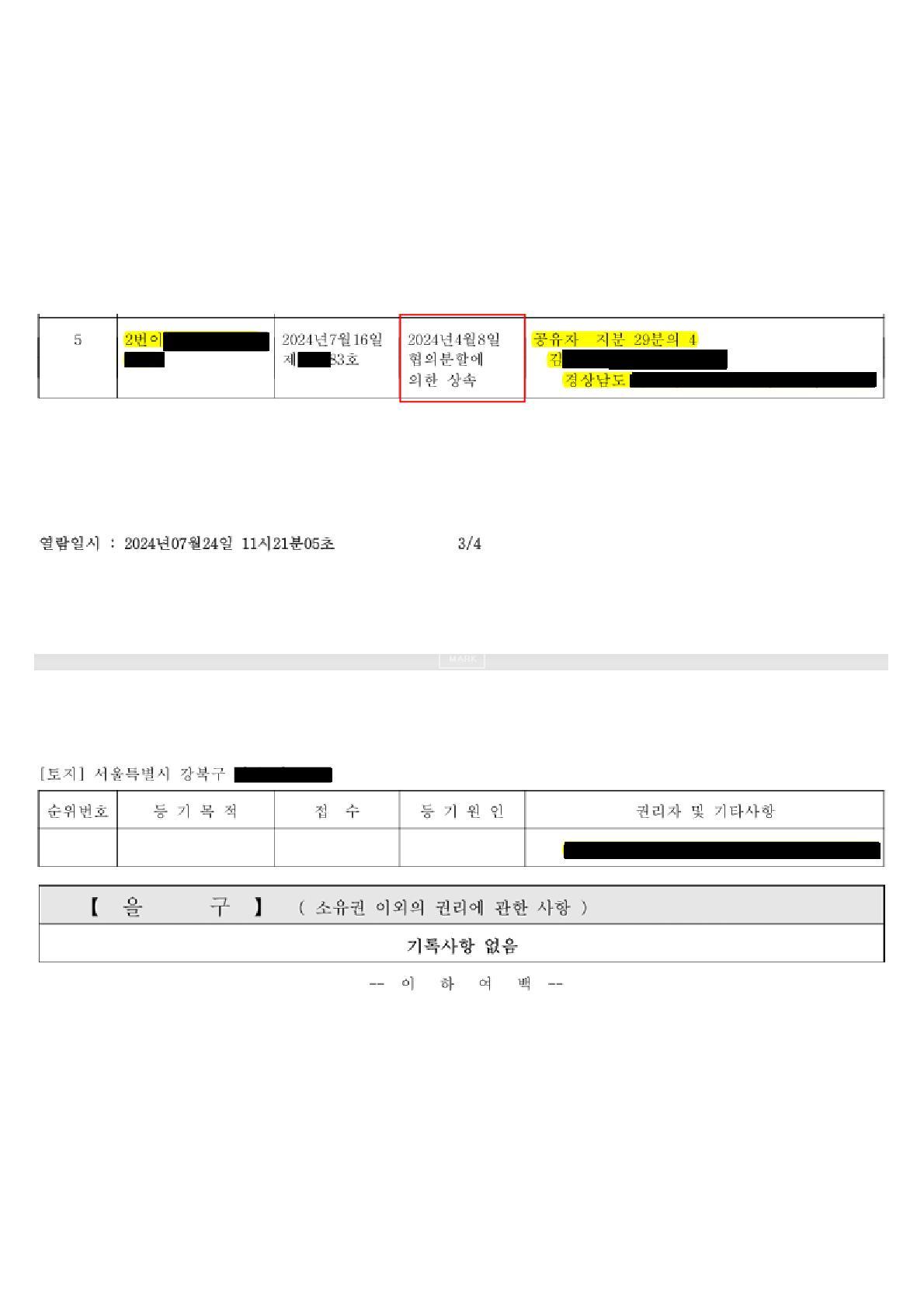 상속 협의 및 동일인 입증을 위하여 분할협의서, 위임장, 확인서, 거주확인서 등에 관하여 현지 국가의 공증 및 아포스티유 절차를 밟아 , 적법한 분할협의절차를 거쳐 상속등기 완료