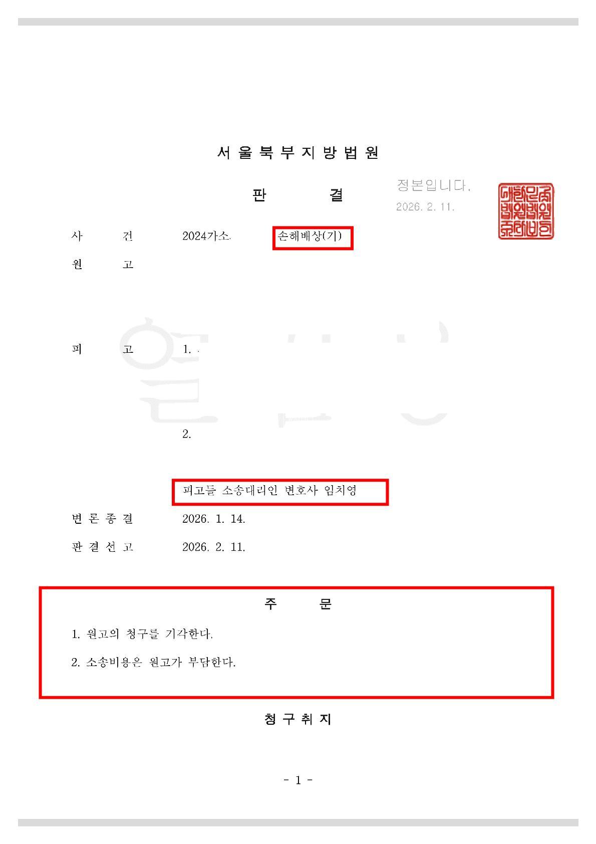 전부승소(원고 청구 기각)