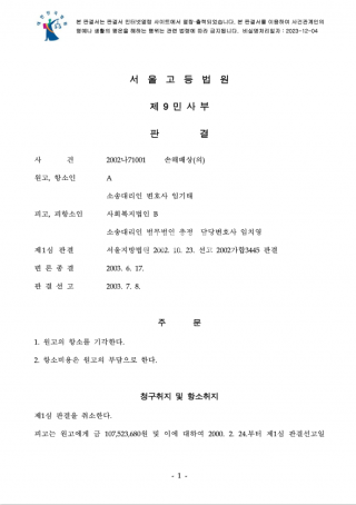 내원 당시 직장암 진행 상황, 수술 전 암세포 침윤 정도, 골반벽 절제 가능성 여부, 암환자의 예후와 재발율 등을 설명하여, 의료상의 과실이 부인(1, 2, 3심 모두 전부승소).