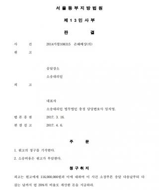 간 조직검사 않은 채 CT검사 시행 후 간세포암으로 확진한 것은 오진이라고 주장하면서 의사 상대로 손해배상청구소송을 제기하였습니다. 그러나, 환자의 만성 B형 간염은 간세포암의 가장 흔한 발병원인인 점, 이런 경우 결절의 크기가 1cm 이상이면 CT 검사만으로 간세포암 진단이 가능하고 조직검사는 간기능 저하에 따른 출혈, 검사의 어려움, 암종 전파의 위험성, 종양 표적의 어려움 때문에 거의 시행되지 않으며, 위음성률(검사의 오진 확률)도 33%에 이른 점, 다른 병원에서 이미 CT, MRI 검사 후 일치하여 악성 종양 소견인 점을 설명하여, 의료과실이 부인되어 전부 승소.