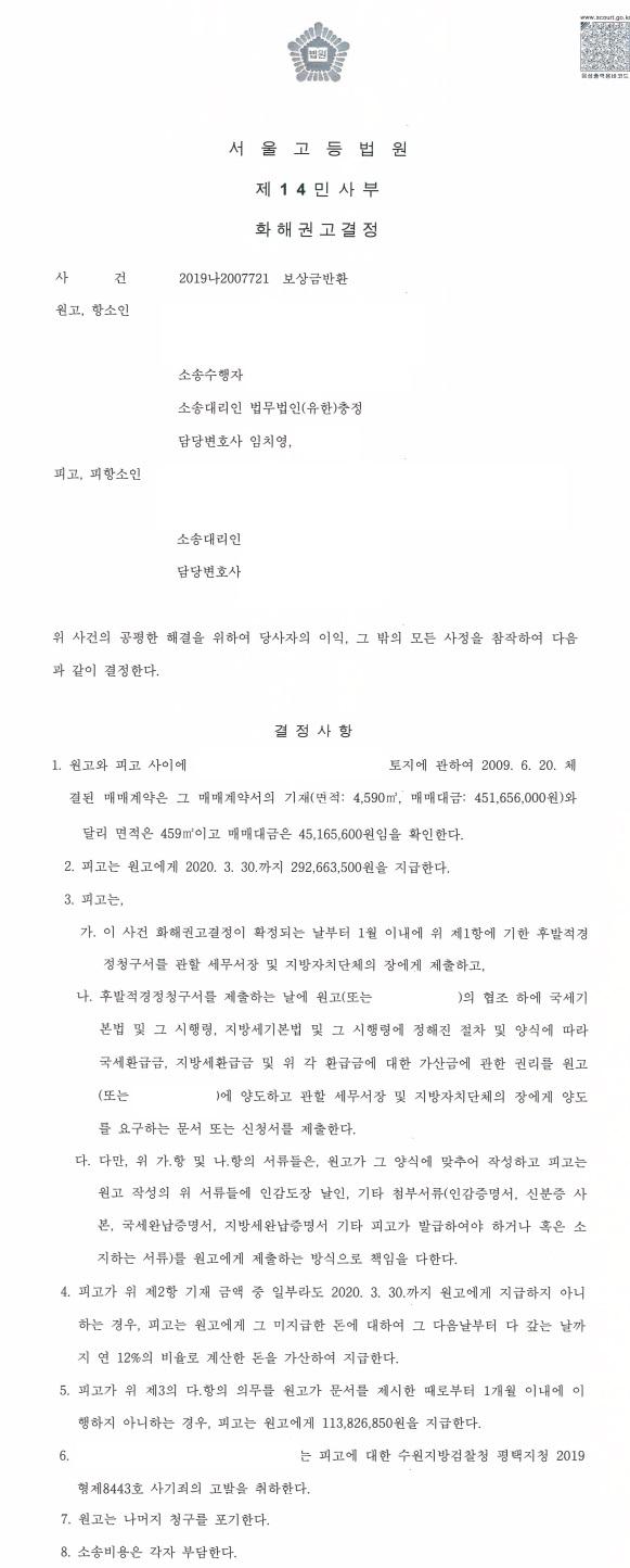 [일부승소]과다지급한 토지대금을 사후에 부당이득으로 반환청구한 사례